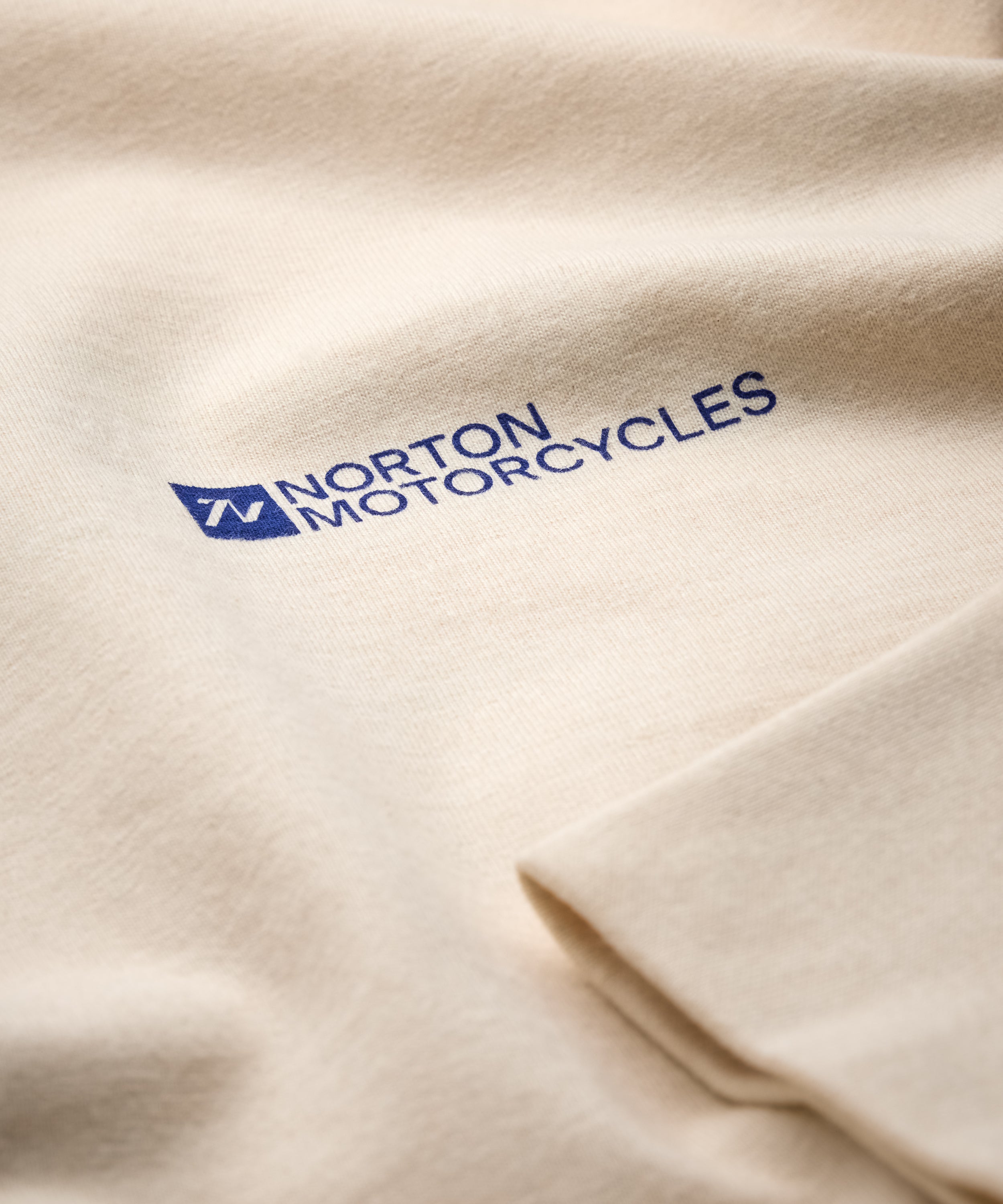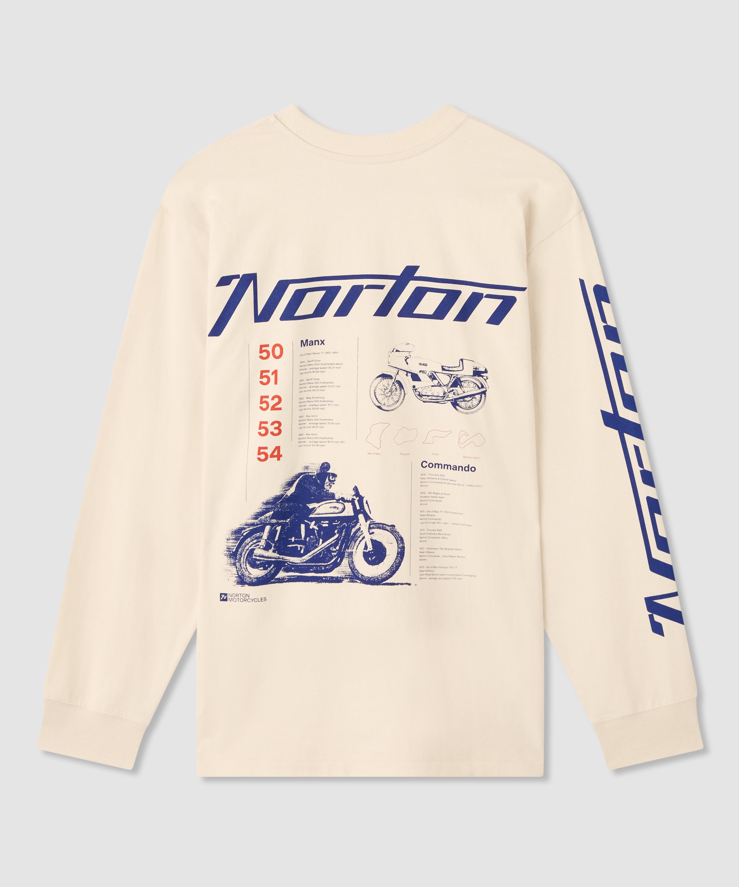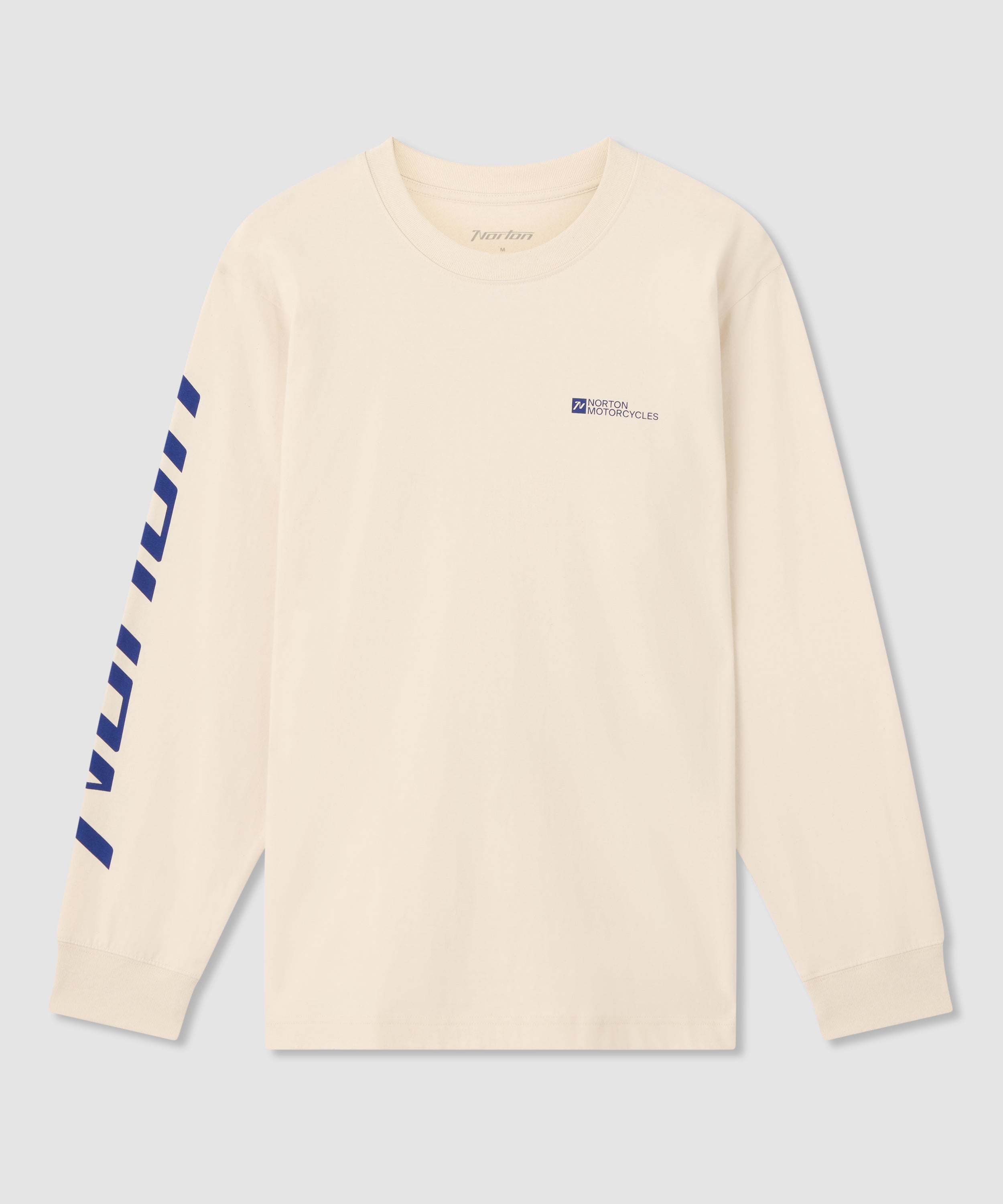 Made from 100% organic cotton this jersey long sleeve T-shirt in beige features a graphic racer print taken from our archive.